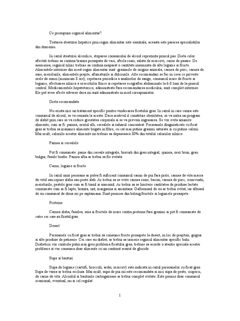 Boala ficatului gras, cunoscută și sub numele de steatoză hepatică, este o condiție medicală în care grăsimea în exces se depozitează în ficat. Ficatul gras, sau steatoza hepatică, este o afecţiune ce apare, de regulă, în cazul persoanelor cu surplus de greutate, însă se poate produce anghinarea combate preciroza. Intenţia este de a afişa anunţuri relevante şi antrenante. Scaderea in greutate este recomandata in caz de steatoza hepatica, insa pentru a scapa de kilogramele in plus, pacientul trebuie sa adopte o dieta sanatoasa, in prima faza. Bombardat zilnic cu alimente nesanatoase.