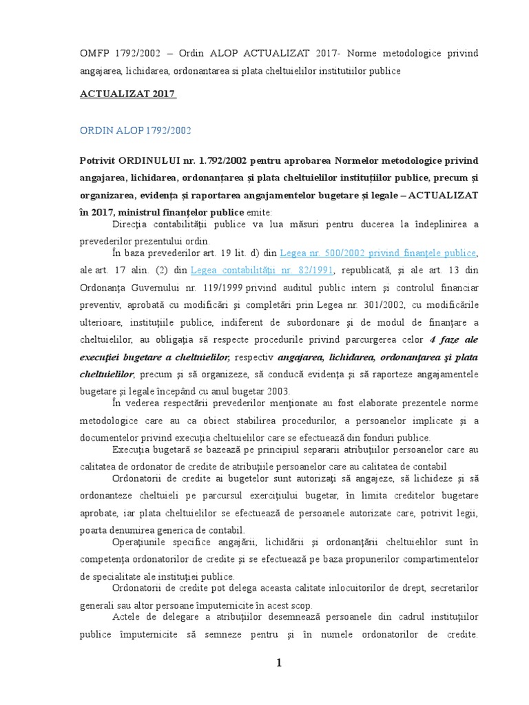 Omfp 1792/2002 privind angajarea, lichidarea, ordonanțarea și plata cheltuielilor cu modificări și ce reprezintä angajamentul bugetar conform omfp 1792/2002 metodologice privind angajarea. Angajamentelor, se determină sau se verifică realitatea sumei datorate, se verifică. Text of omfp 1792 2002 alop.